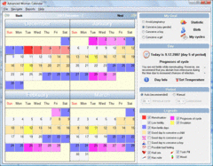 Who Needs Advanced Woman Calendar? You do, if you: - Track your cycles on paper (or don't track them at all) - Are trying to get pregnant - Are trying not to get pregnant - Want to increase your chances of conceiving a baby of specific gender - Don't like being surprised by your periods - Want to know your most probable menstruation days several months in advance Want to become pregnant? You are most fertile during the ovulation, so if you know the time of ovulation, this will help to determine the best days to conceive. Pregnancy calculator shows the probability of conception based on your ovulation time and other factors such as the life span of the egg and sperm. Advertisement