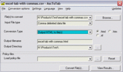 AscToTab is a free utility that converts *plain* text and comma-separated or tab-delimited text files containing table data into tables. The program can create either HTML or RTF tables with the output written to file. For HTML tables the output can be direct to the clipboard, ready to paste into a HTML source editor. For plain text files AscToTab detects how many columns the table has; their alignment, and which rows are header rows. It can spot data that spans multiple columns or rows. For files containing tab- or comma-delimited data the table is built up line-by-line, with each value placed in a cell by itself. There are a large number of formatting options, so you can choose the fonts, borders etc and even to color odd and even rows differently. The software uses the same text analysis engine as AscToHTM and AscToRTF and is available under Windows and OpenVMS.