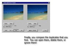 Duplicate Image Finder locates duplicate images on your computer. The first step is to select a path to scan. DIF then locates all the images in the path (and sub-paths) you specify. The next step is to select a 'match %'. This helps DIF determine how closely you want the images to match. DIF then analyzes all of your images and shows you a list of images that were found. You can then delete, move, or view the duplicate images. DIF is very fast and easy to use. It comes with an install/unintall program. DIF analyzes the following types of files: JPEG, BMP (bitmap), and GIF files.