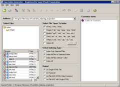 Program can create two types of tree menus of indexed files in output HTML file: static menus and click-to-open menus. Generated file(s) automatically will be placed in the indexing folder. Advertisement