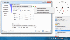 Easy Time is such tool with an intuitive and friendly interface. Schedule reminders, be notified via e-mail, run programs and scripts on set times, diarize, synchronize clock via Internet - simply said, have a control over your time. Experts are given all options, beginners are not overwhelmed by the interface. With Easy Time, you can set alarms using several, distinctive schedules. It is possible to combine single, periodic and aperiodic time schedules. You can label each alarm with name, subject and have a note to track anything, what?s related. Moreover, you can receive notifications via e-mail that will include this information. A program, or a batch script, can be run on an alarm event as well. Next, it is possible to adjust look and sound of each alarm, define its durability and to postpone it, when raised - if desired. Easy Time has a built-in diary. It gives an overview of a week with a summary on notes and alarms. By selecting a day, you get a full access to all alarms planned for that day and all notes related to. With auto-run capability enabled, Easy Time can show you all notes and alarms for present day, each you turn your computer on. To stay on current time, there's a function to synchronize it via Internet. The database holds 281 time servers, which are sorted by world-wide regions. Time synchronization can use multiple-queries to eliminate network lag, and you can set it to be performed automatically, or manually. Even a small feature can be an advantage. To maintain a comfortable track of current time, a skinnable clock is at your disposal with 32-bit graphics and anti-aliasing. A number of skins are available right with the installation, yet you can still create one easily for yourself. Moreover, you can override the taskbar clock to display time the way you want it. Advertisement