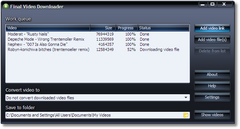 Get Final Video Downloader if you want to download or convert YouTube videos to your PC. The downloader is extremely simple to use. It integrates with your web browser, so you just have to display the video page in your browser and click the Final Video Downloader icon. Final Video Downloader uses an advanced acceleration technique to boost the download speed by up to 500% compared to other downloaders. You can download several videos at the same time, and you can store them in their original format or optionally convert them to e.g. iPod, PSP or PS3 formats. Final Video Downloader is 100% free. Advertisement