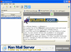 - Hight rate Email send with multithread process - Edition of HTML Message with personnalisation, background, images... - Email send failure management. Advertisement