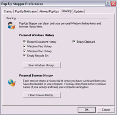 The only privacy product to block pop-up windows and clean tracking files in every browser on every Internet connection. No matter how you surf, you are protected. Pop-Up Stopper Professional blocks, or quickly closes, pop-up and pop-under ads in ALL browsers, including FireFox, AOL, MSN, Netscape, Internet Explorer, SBC Yahoo, WMConnect, Opera and more! Pop-Up Stopper Professional provides more efficient pop-up and pop-under blocking technology in an easy to use utility that can optionally update itself to download free updates to ad blocking technology. The more browsers you have on your system, the more Pop-Up Stopper Professional will do for you. Clean and manage cookies in every browser, from one simple utility. Remove browser history and cache and even clean index.dat files, even for separate AOL users and logins! Panicware's patent-pending XA technology blocks only pop-up ad windows and allows users to allow pop-up windows from specific web sites! Preserve bandwidth by stopping pop-up windows before they load! Play one of many fun sounds when a pop-up window is blocked. This product even blocks those new, annoying Messenger Service Spam windows. 30 day free trial - free tech support and an unconditional money back guarantee! Now with a new update server and direct link to Panicware Resource Center.