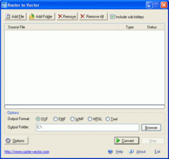 Key Features: 1. Input image formats: BMP, JPG, TIF, GIF, PNG, PCX, TGA, RLE, JPE, J2K, JAS, JBG, MNG and more. 2. Output vector formats: DXF, HPGL, EMF, WMF and others. 3. Create center lines and outlines. 4. Outline solid raster areas. 5. Color, Gray and black-and-white images vectorization. 6. Scale images in the X and Y directions to make them larger or smaller. 7. Increase or decrease brightness and contrast. 8. Tracing raster lines, arcs, circles, arrow lines, dash lines, polylines, hatches on monochrome, grayscale or color images. 9. Automatic correction: restoring of intersections, aligning, joining fragments, joining fragments to line, arc, circle and polyline. 10. Removing low sized vector objects, correction of recognized texts. 11. Automatically straighten images to a reference line. 12. Remove speckles of color to make colors more uniform. 13. Can adjust tolerance levels. 14. Batch processing. 15. Drag and Drop supported. Advertisement